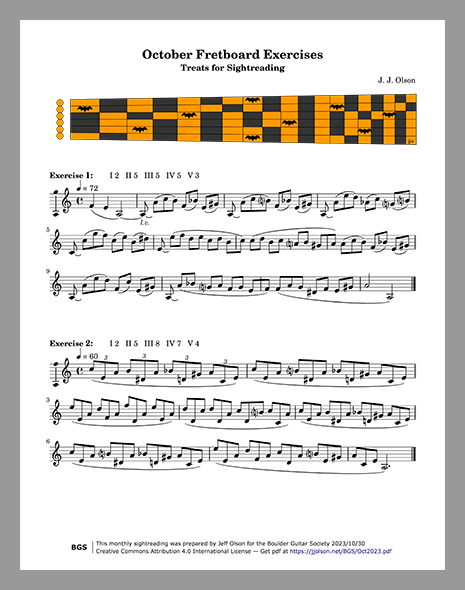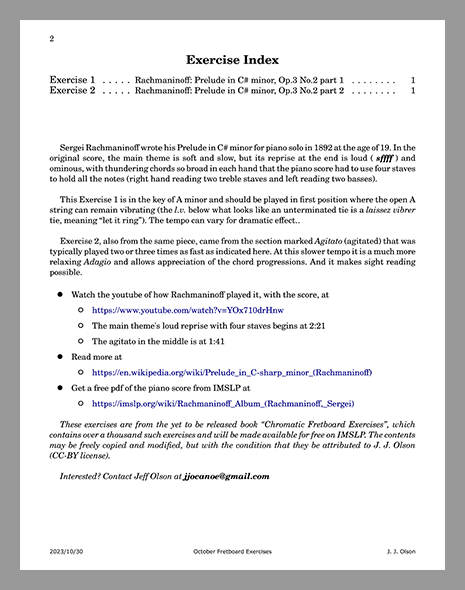 The PDF handout is where you drill down to get the music and learn its identity. The front page is always the untitled music to sightread and the back page is the "reveal" with more tidbits and links about the music: